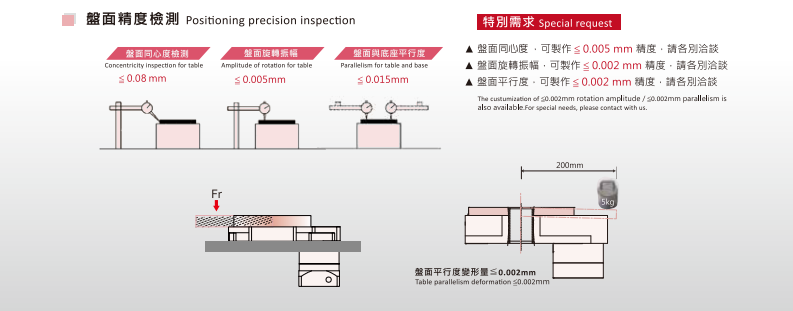 一、旋轉盤本體使用合金材料,經"μ”級加工機,車銑完成·確保各部之精準度。